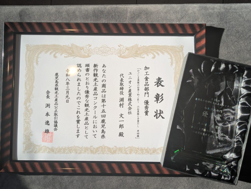かごしま黒豚六白亭通販部が「第15回鹿児島県新作観光土産品コンクール」にて加工食品部門優秀賞を受賞いたしました